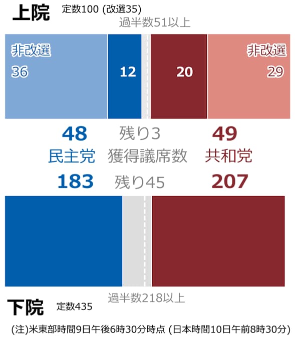 米連邦上下両院選や州知事選などを一斉に実施する中間選挙は8日投開票された 野党共和党が下院選で優位に立ち上院選では横一線の大.
